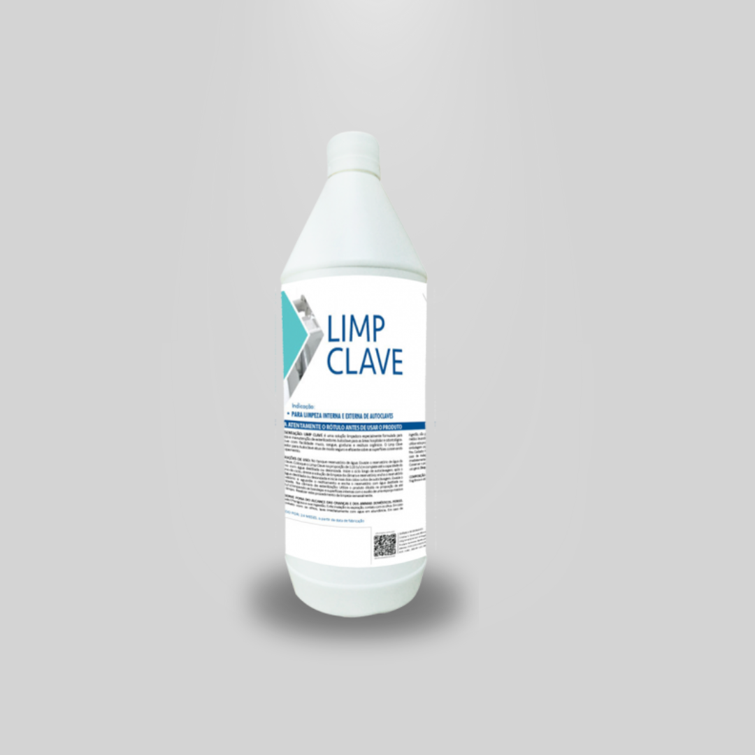 DESCRIÇÃO: Limp clave é uma solução limpadora especialmente formulada para limpeza e manutenção. Remove com facilidade muco, sangue, gorduras e resíduos orgânicos. Atua de modo seguro e eficiente sobre as superfícies conservando o equipamento.