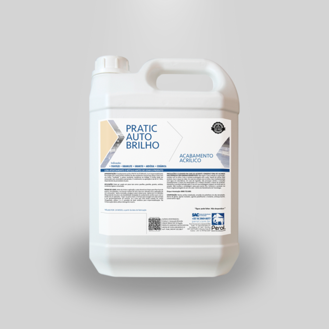 OBSERVAÇÃO: Com o piso limpo e seco, aplicar 2 camadas da base seladora Power Sell ou Power Sell Max e 2 a 3 camadas de Pratic Auto Brilho com “MOP” ou pano macio. Tempo de secagem entre camadas de 30 minutos.