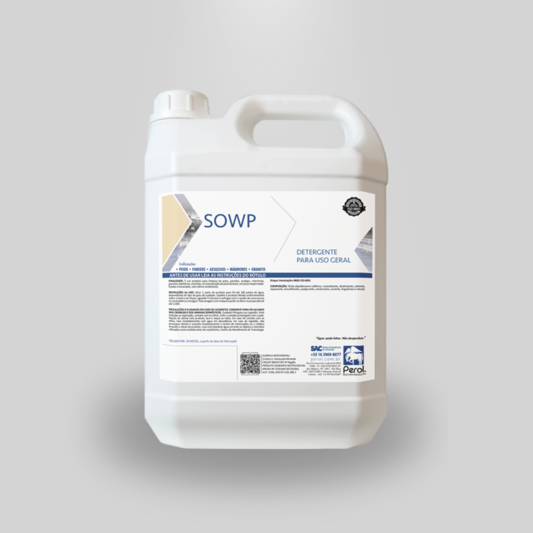 DESCRIÇÃO: Indicado para limpeza e manutenção diária de pisos tratados. Não agride o filme e possui polímeros em sua formulação que ajudam na manutenção do brilho. Sowp possui ótimo rendimento devido sua alta diluição.pH neutroDiluição: limpeza pesada até 1:50 / limpeza com máquina e manutenção até 1:200.