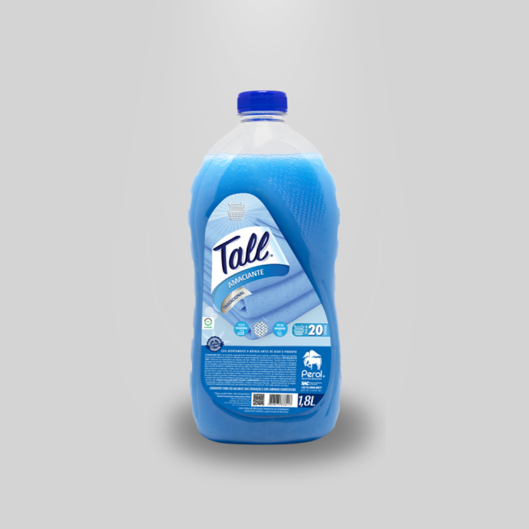DESCRIÇÃO: O Amaciante Tall é um produto especialmente desenvolvido para amaciar e perfumar as fibras dos tecidos. Possui suave fragrância e pode ser utilizado em roupas de algodão, tecidos mistos e sintéticos.